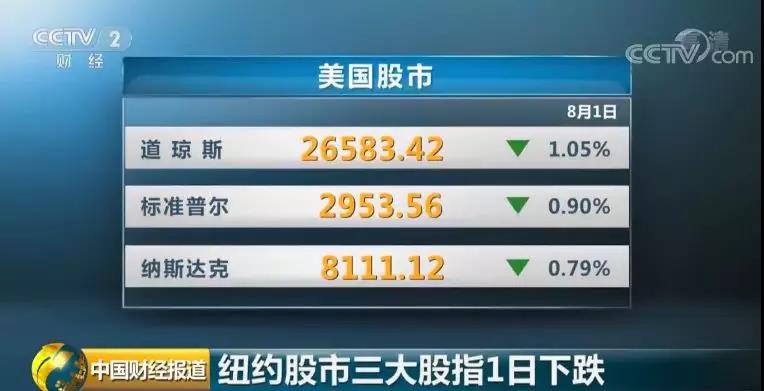 截至1日收盘,纽约三大股指全部收跌。道琼斯工业平均指数收于26583.42点,跌幅为1.05%。标准普尔500种股票指数收于2953.56点,跌幅为0.90%。纳斯达克综合指数收于8111.12点,跌幅为0.79%。按美股总市值估算,昨夜蒸发市值约3万亿人民币。