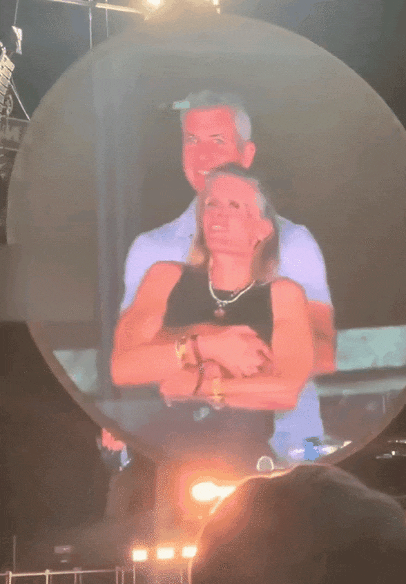 7月16日晚,在酷玩乐团(Coldplay)波士顿演唱会上,镜头扫向一对前后相拥的男女。