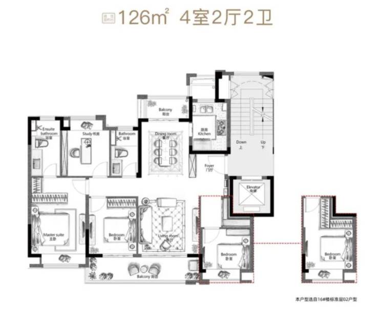 为了满足更多空间需求,126㎡户型采用了3+1户型设计,让业主对房间的设置拥有更灵活的选择。
