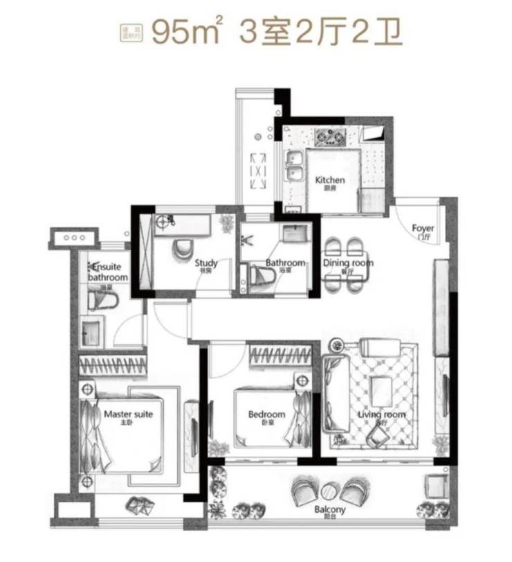 比如说,百平米户型做双卫设计。这个户型既考虑了功能实用性,又考虑到了生活舒适度。