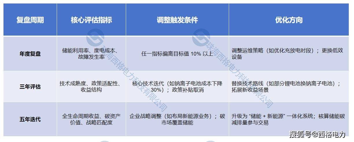 企业储能技术路线图并非一成不变,需建立 “年度复盘 - 三年评估 - 五年迭代” 的动态优化机制,根据企业用能需求变化(如产能扩张)、外部技术发展(如新型储能技术突破)、政策调整(如碳市场扩容),及时调整技术路线与实施计划,确保路线图始终贴合企业实际需求。