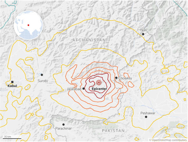 31日凌晨发生的地震发生在阿富汗贾拉拉巴德东北27公里处,震源深度约为8千米。贾拉拉巴德是阿富汗楠格哈尔省一座约有20万人口的繁华城市,位于巴基斯坦边境附近的山区,以地震活动活跃而闻名。