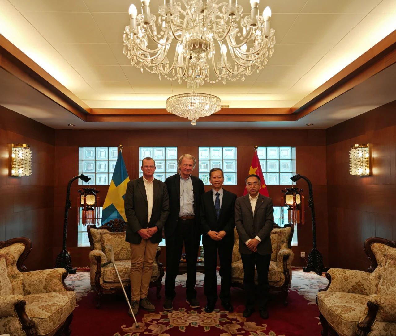 崔爱民表示,中国高度重视应对全球气候环境挑战,积极稳妥推进碳达峰碳中和,坚持绿色低碳转型。瑞典在绿色可持续领域有着丰富的经验和先进的技术,双方具有合作潜力。期待中瑞、中欧进一步加强政策交流和务实合作,希望基金会为推动对话交流进一步发挥积极作用。