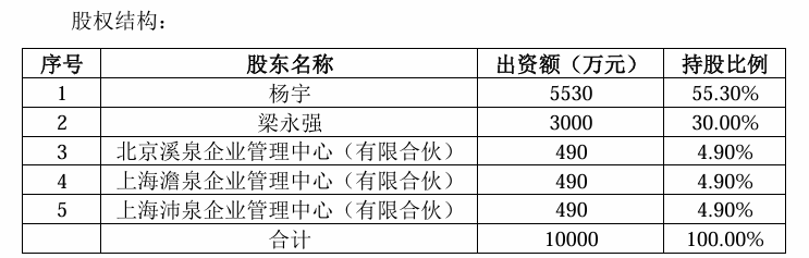 从股权结构来看,梁永强持股30%,杨宇持股55.3%,还有3家员工持股平台。