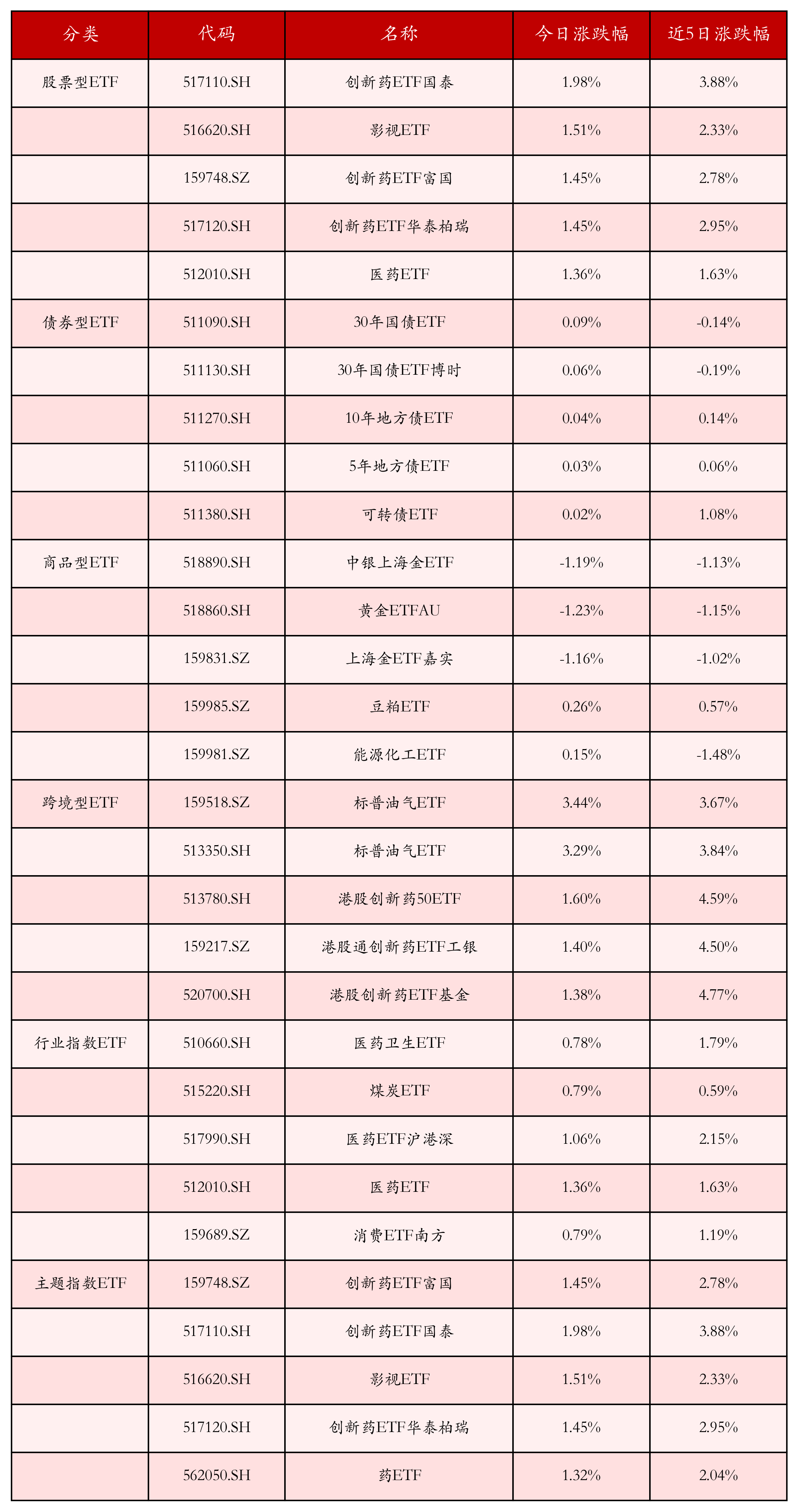 创新药ETF上涨;多只基金提高份额净值精度丨E