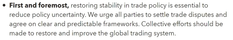 关于如何化解这些风险?IMF给出的答案还是减少不确定性:全球经济需要清晰、透明和可预测的规则,尤其是在贸易领域。