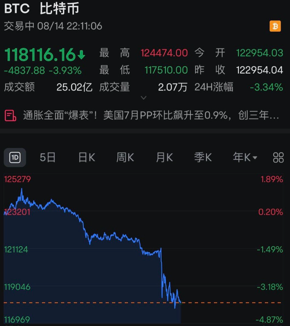 其中,比特币跌超3%,跌破120000美元,以太坊也跌超3%,雪崩币更是大跌逾6%。